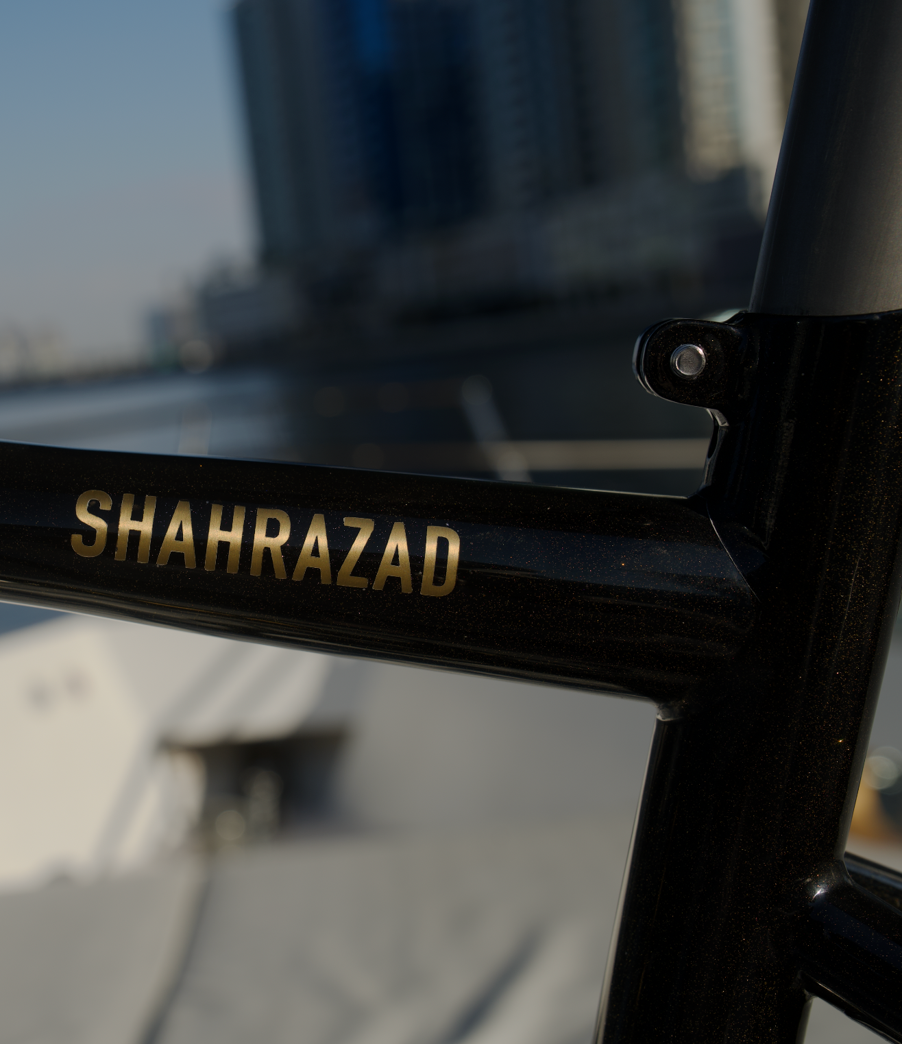 We named our bike Shahrazad, drawing inspiration from the storytelling queen. The more you ride, the more stories you'll create... now it's our riders turn, to continue the story beyond a thousand and one nights.