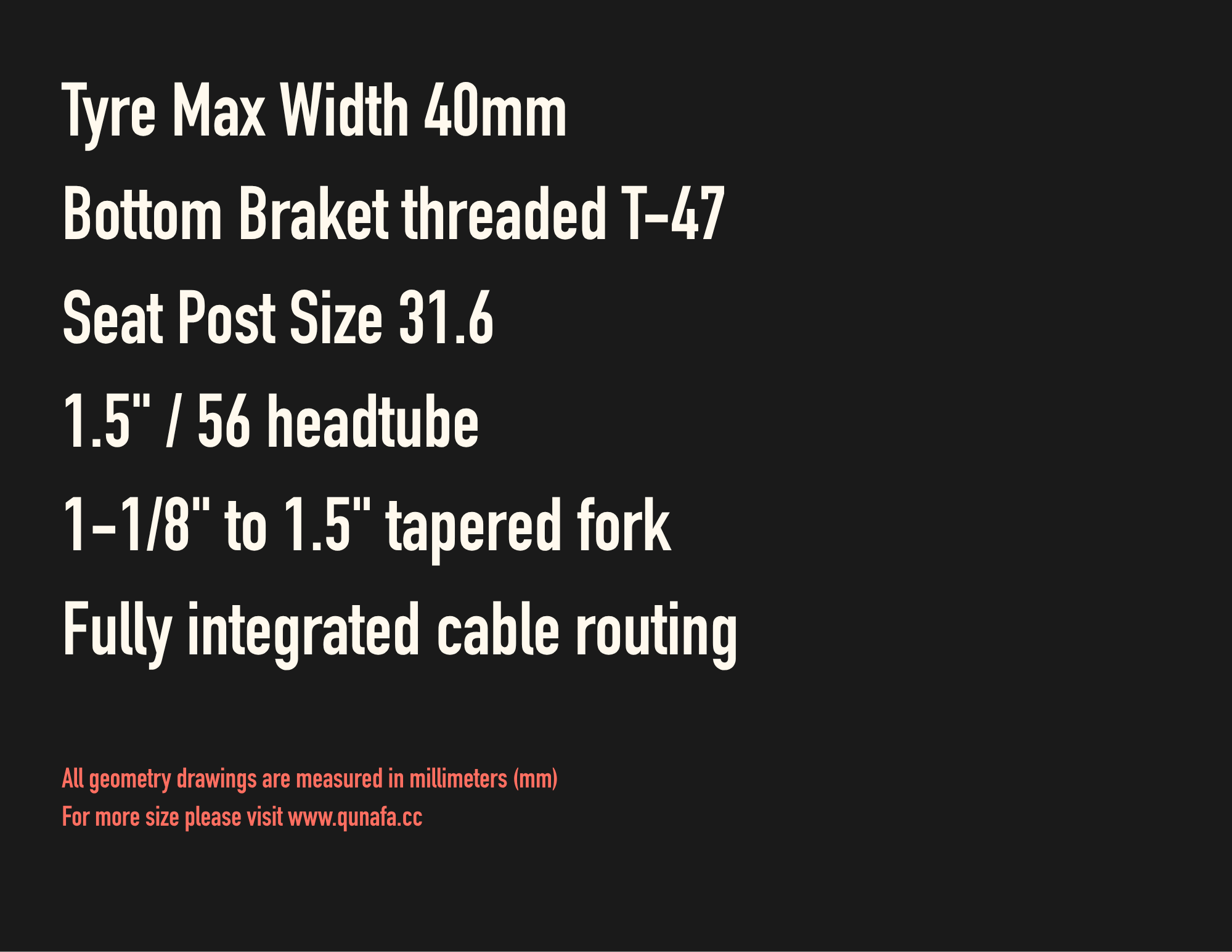 - 3D-Printed Titanium Head Tube: Our signature head tube is 3D-printed, allowing for fully integrated internal cable routing and unmatched structural precision.